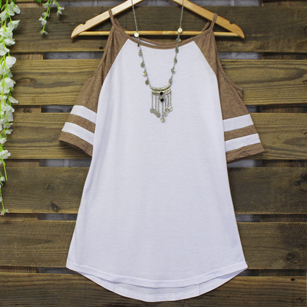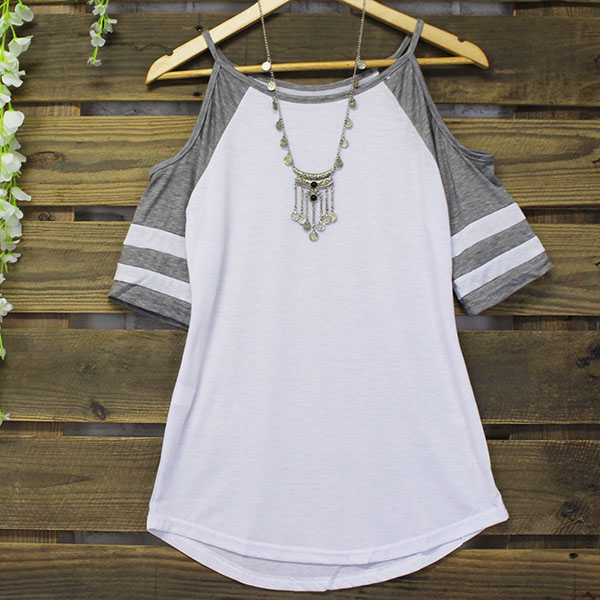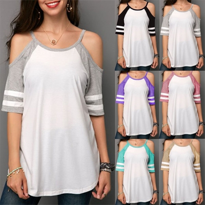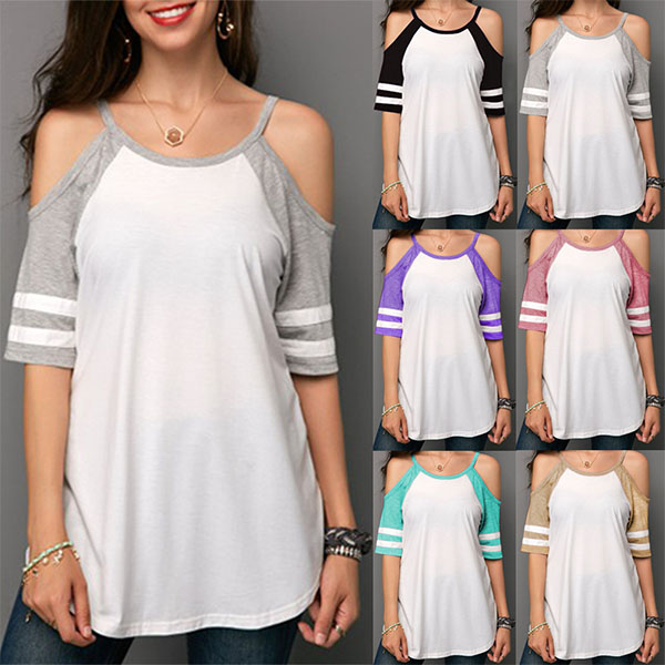 You can have a cozy yet sexy style in this t-shirt. Its attractive designs like off-shoulder and contrast color