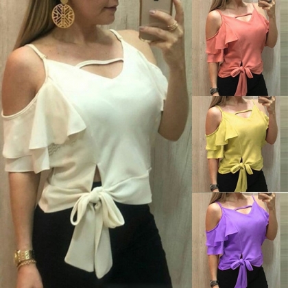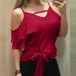 Hey,girls,it is a good chance to boost your daily style with this top. Sling and off-shoulder design