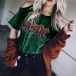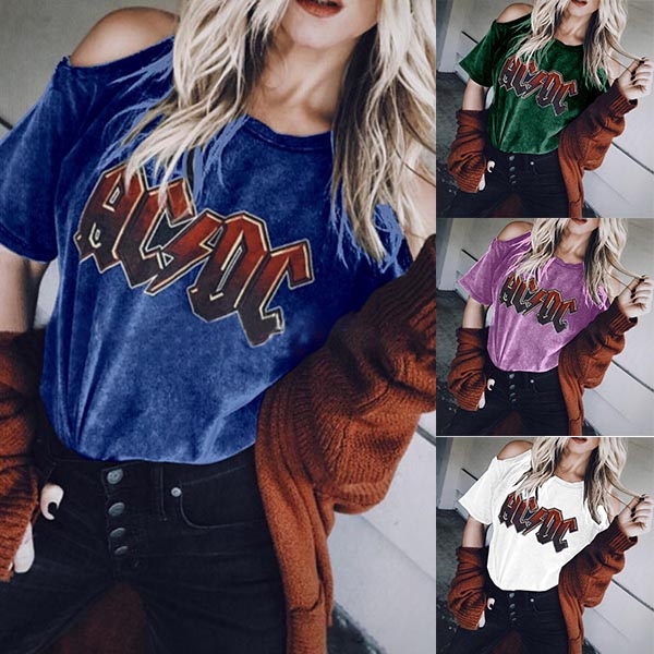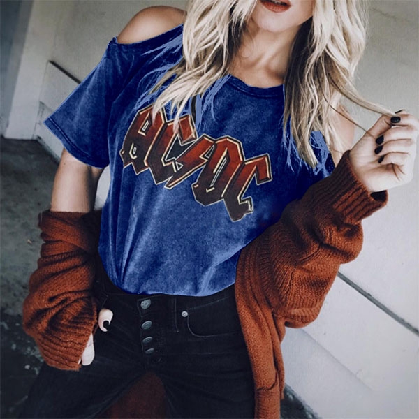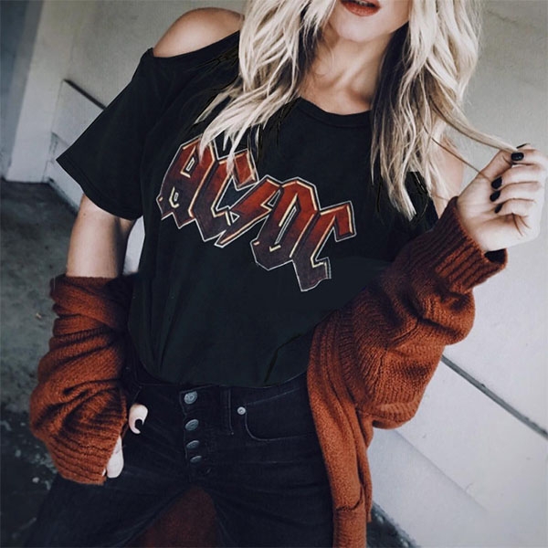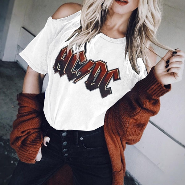 This t-shirt would be your new favourite in these summer days. The off-shoulder and letters printed