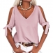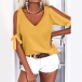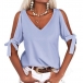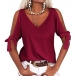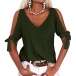 Solid color style,the off-shoulder and knotted design at the sleeve part make this piece look