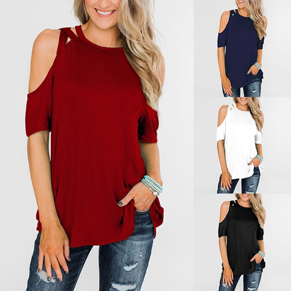 You can stay cozy yet sexy in this t-shirt. Bears a solid color,the off-shoulder design makes this
