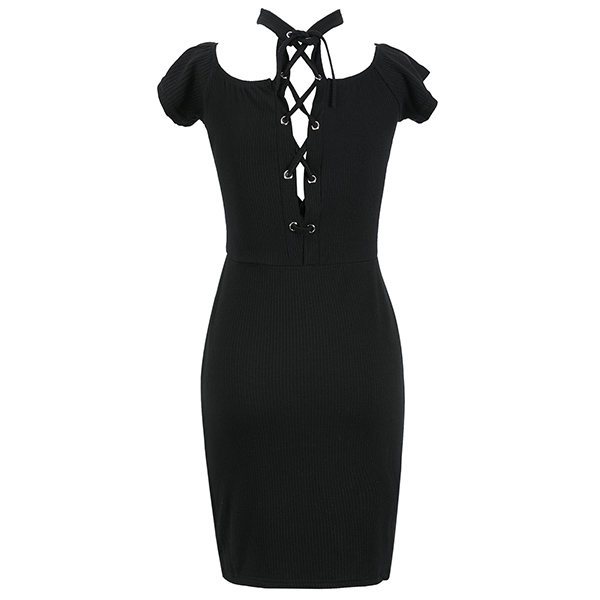 Achieve for a sexy and flirty look with this dress. Halter style,with off-shoulder and backless design,