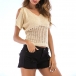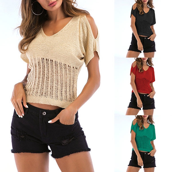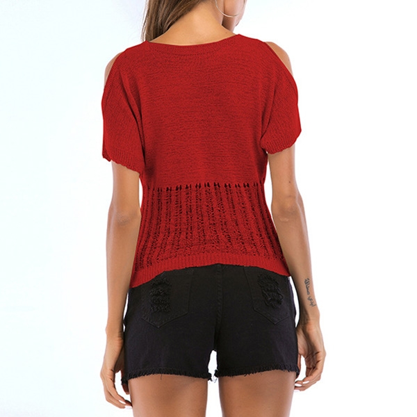 Thanks to the hollow out knit style,you might be attracted by this wonderful piece. The off-shoulder and v-neck