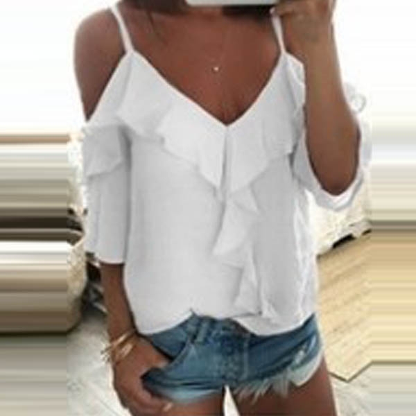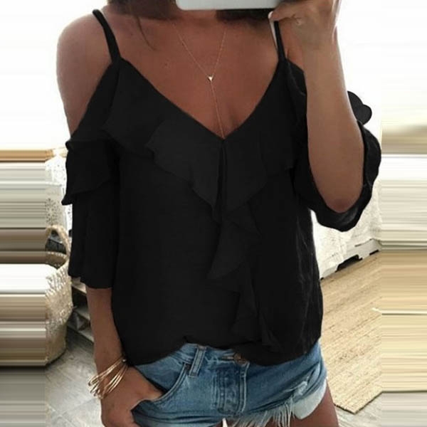 Style and femininity come together so perfectly in this top! Sling style,its off-shoulder,v-neck and ruffle