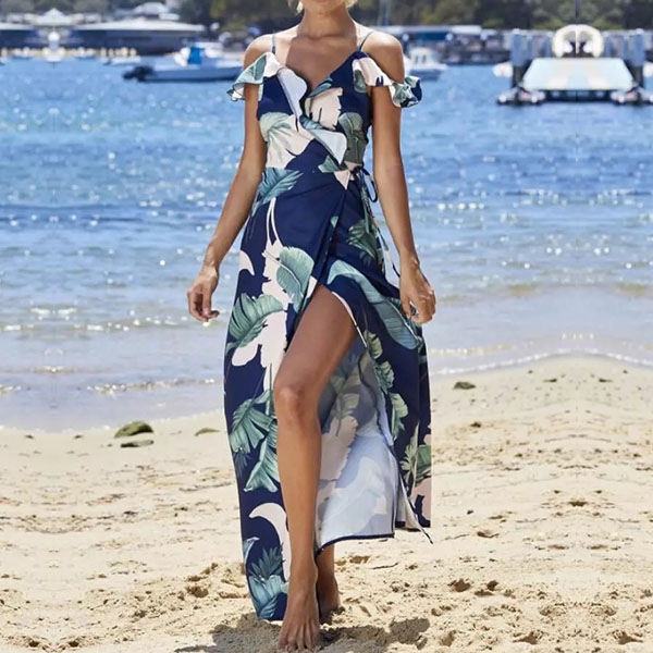 the eye-catching printed details can help you catch more eyes,while the off-shoulder,v-neck and