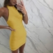 this breathtaking dress. Halter style,with backless and a fit silhouette design,this piece is