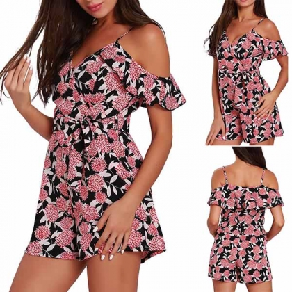 Showcase your sexy and charming summer style with this beautiful romper. It features vibrant floral print,