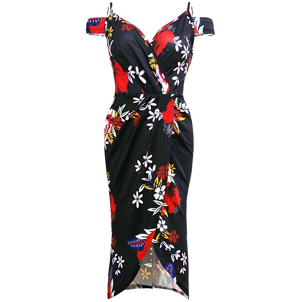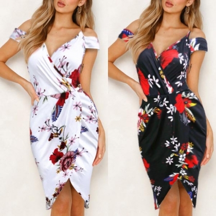 vibrant and eye-catching printed details,the off-shoulder,v-neck and irregular hem design will offer you a