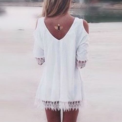 Start your wonderful day with this dress! Boasting a solid color,its off-shoulder,v-neck and lace