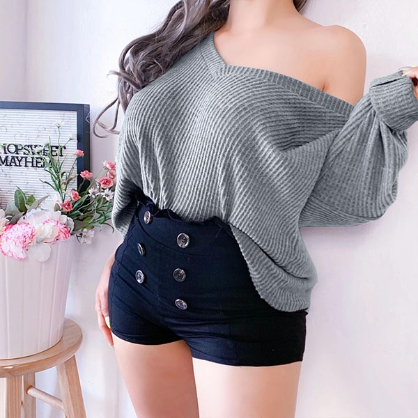 Solid color style,the off-shoulder v-neck design can make you look sexy and flirty. Simply need