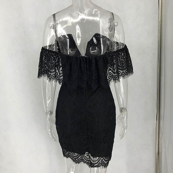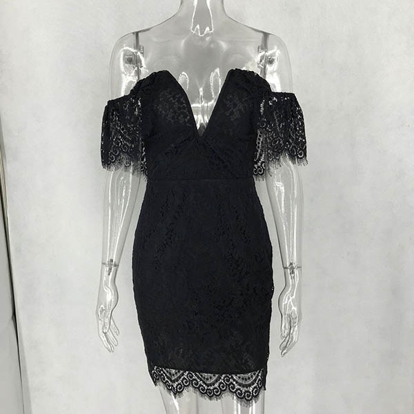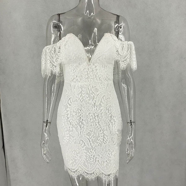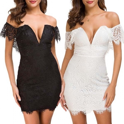 your eyes focused on this lace dress? The off-shoulder and v-neck design can make you look flirty,
