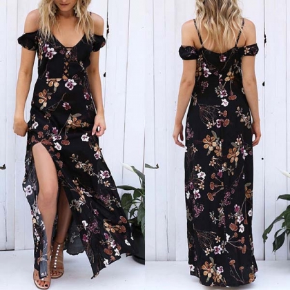 floral print,its stunning details like off-shoulder,v-neck and slit hem design make this piece look so sexy