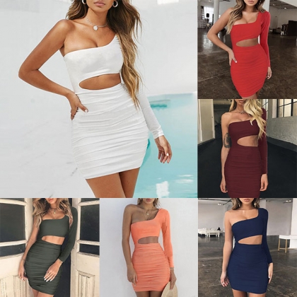 Hit the night cocktail parties in stunning style with this dress. The one-shoulder and hollow out design