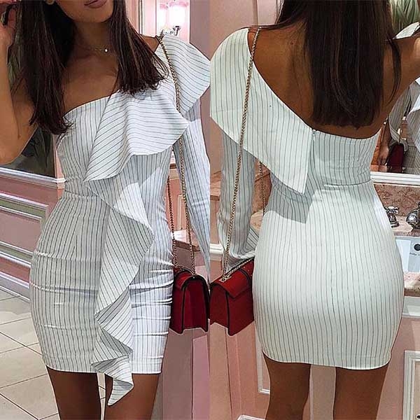 Obviously,this dress will do just that with zero effort needed on your part.Striped style,the one-shoulder