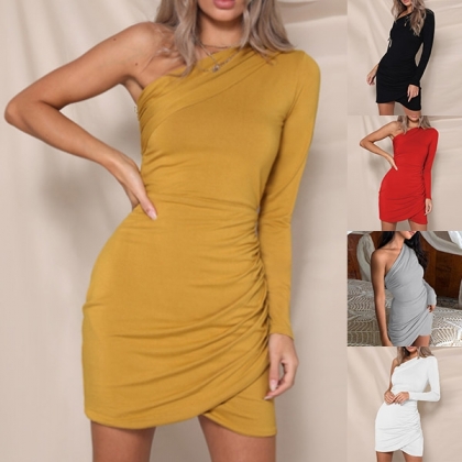 dash of elegant vibes,while the one-shoulder and irregular hem design will give you a more charming look.