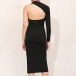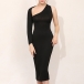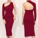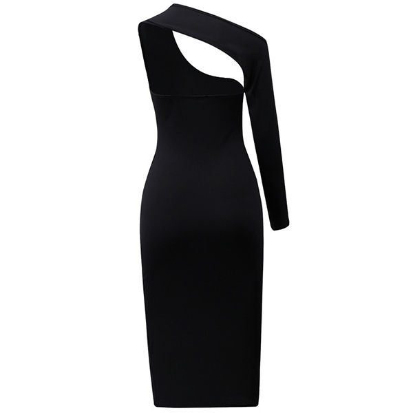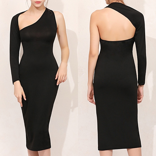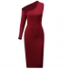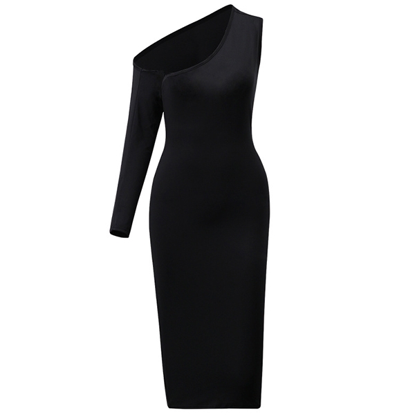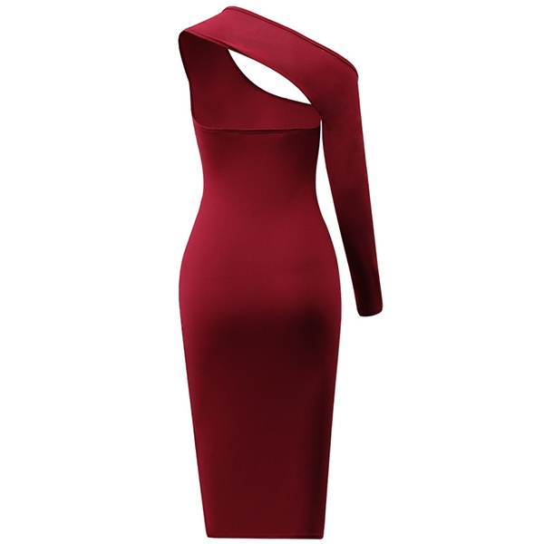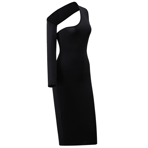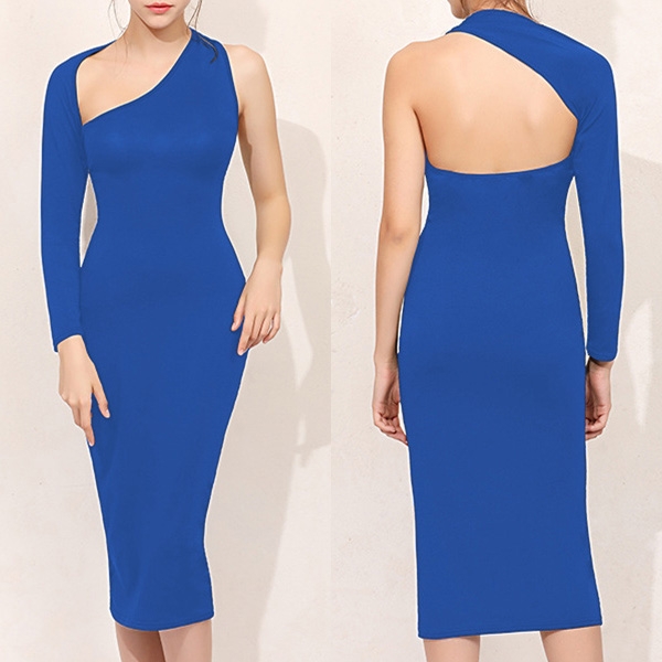 Sexy One-shoulder Long Sleeve Solid Color Slim Fit Party Dress