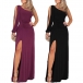 design details like one-shoulder,slit hem and slit long sleeve design make this piece look so alluring.