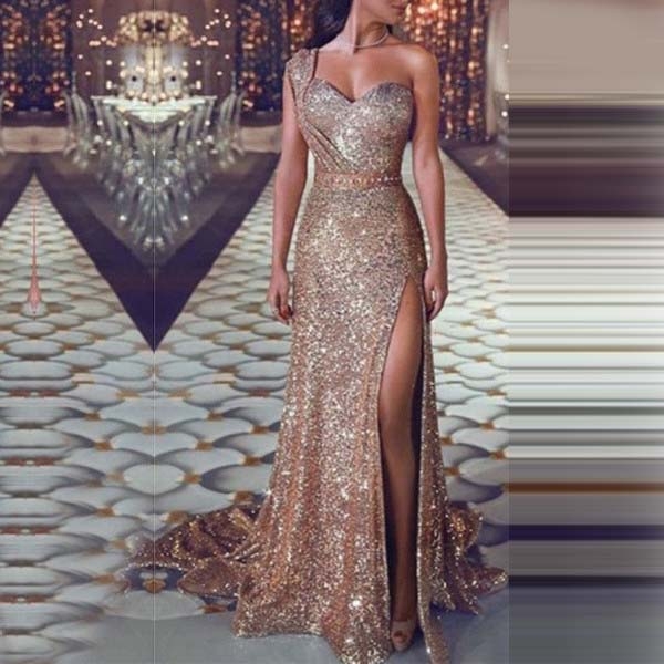 Du kan lätt bli den mest fantastiska partytjejen med hjälp av den här klänningen. Designen off-shoulder och slitsfåll