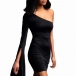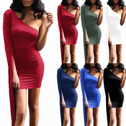 as your perfect partner. The one-shoulder and slit long sleeve design make this piece look so sexy