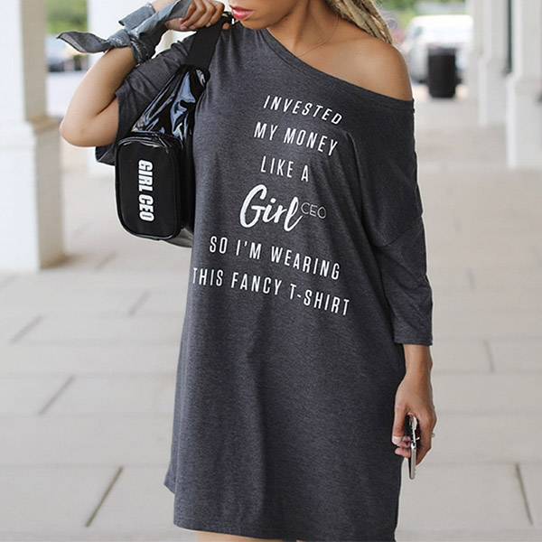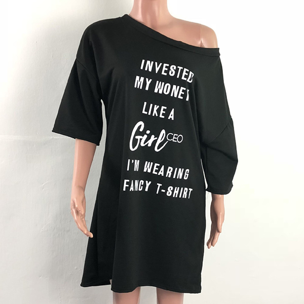 with one-shoulder design, a middle sleeve, creative letters print on the front, slip into your cool sport shoes