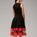 in a flowing silhouette, feature a contrast color and sheer mesh tiered design throughout the hem,
