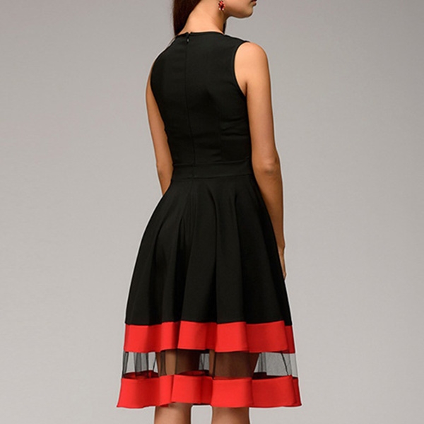 cast in round neckline, sleeveless, sheer mesh spliced design at the front for a chic appeal,