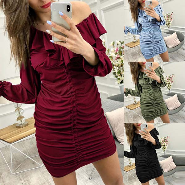 The ruffle boat neck design will further enhance your feminine appeal,while the fit silhouette design