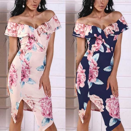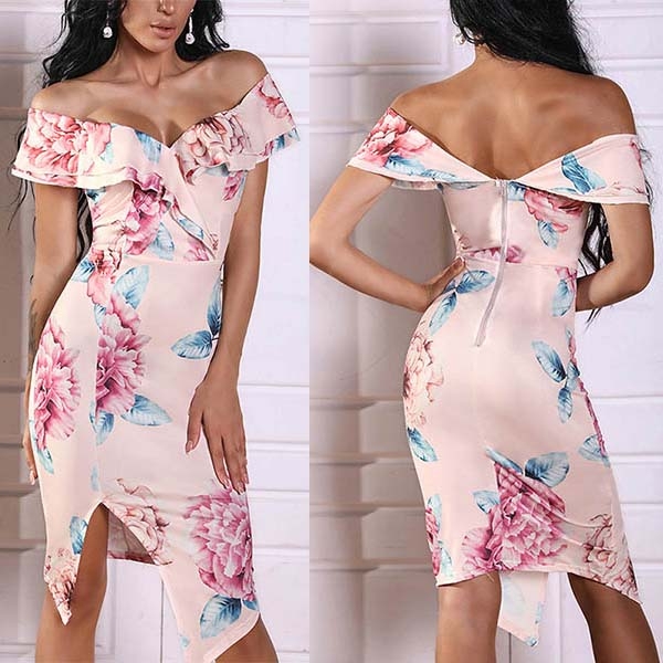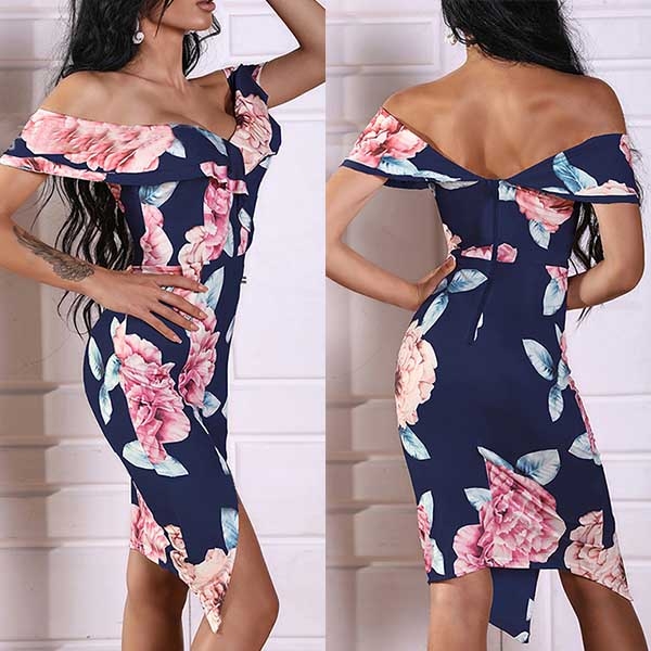 details,the ruffle boat neck and slit hem design make this piece look so sexy and alluring,and the fit