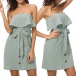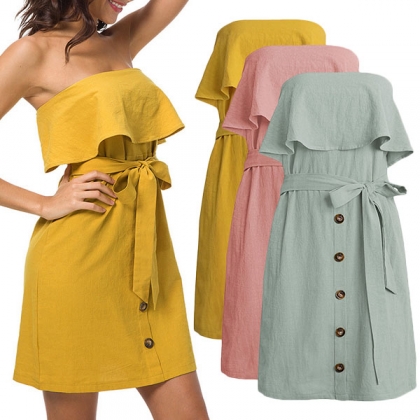 appeal. Solid color style,the ruffle strapless design makes it look so attractive. And the single-breasted design