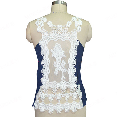 This tank tops looks so sexy and chic. Backside with see-through lace crochet design,making