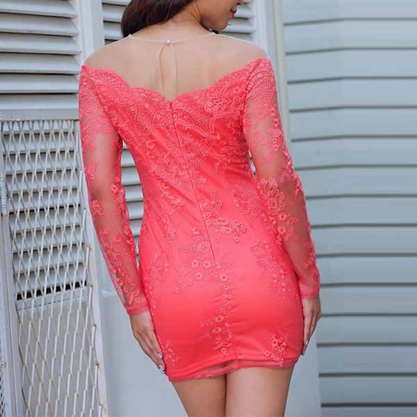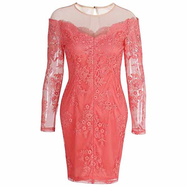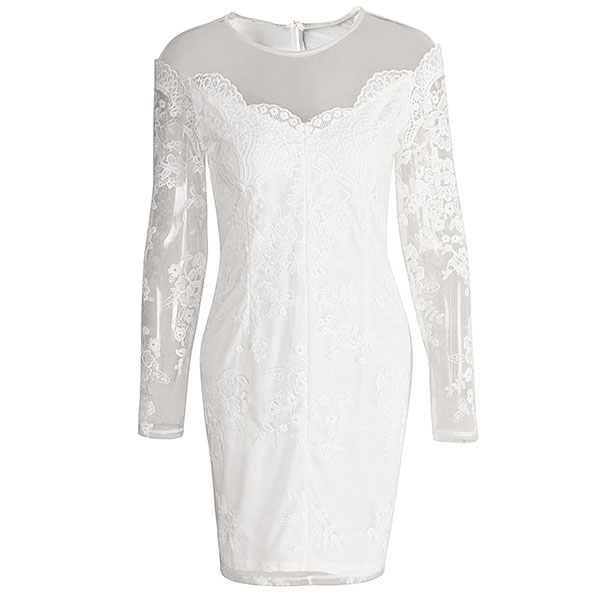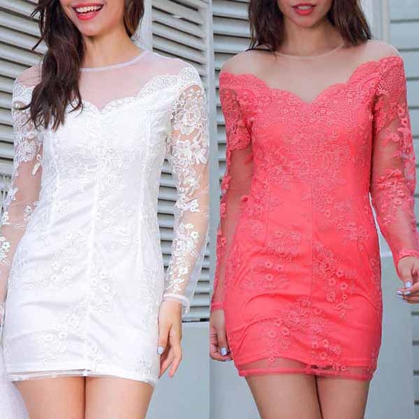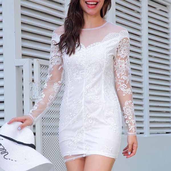 One of the easiest ways exude your charming feminine appeal is through this dress. The see-through lace spliced