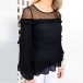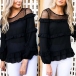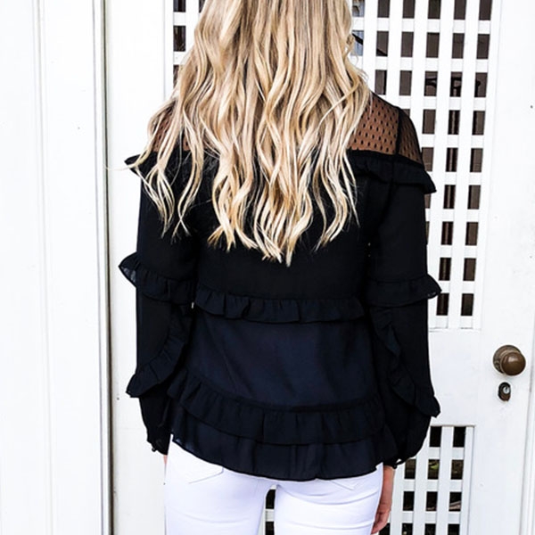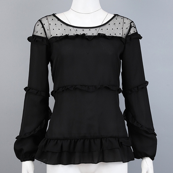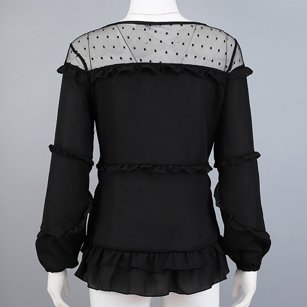 black tone,the see-through lace spliced and ruffle design make this piece look so sexy and sweet.