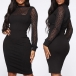 Sexy See-through Lace Spliced Long Sleeve Slim Fit Dress