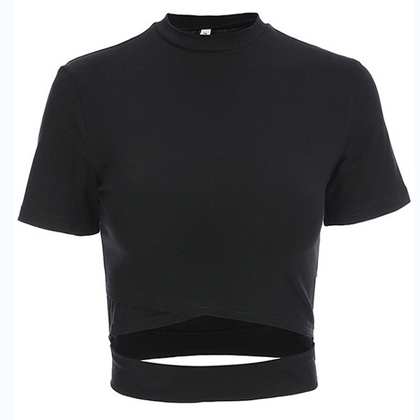 It comes with a solid color,finished with short sleeve and mock neck design,