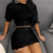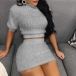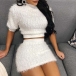 Sexy Short Sleeve Plush Crop Top + Skirt Two-piece Set