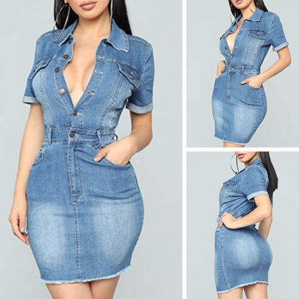 As a woman,such a sexy denim dress must fits your taste.It is finished with short sleeve,
