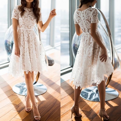 design med kort ärm och rund hals, de ihåliga detaljerna får dig att se sexigare ut.