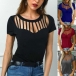 Combines of cozy and sexy vibes,this t-shirt can help you win more eyes. Solid color style,its soft and
