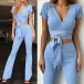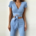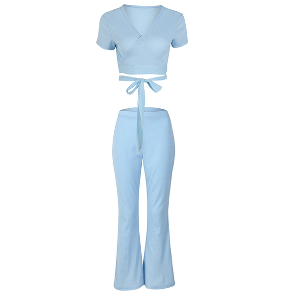 Consists of a short sleeve v-neck crop top and a high waist pants,this two-piece set not only can showcase your