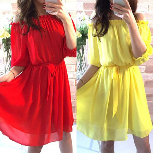 This dress makes it easy for any girl to look effortless charming. Solid color style,with a sexy slash neck and half sleeve