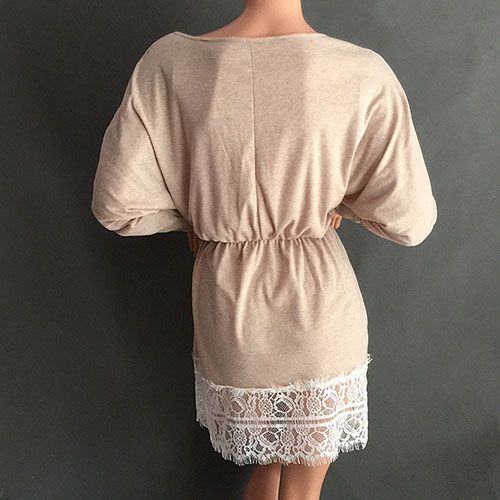 Sexy and feminine,this dress features a slash neck and lace spliced design,chic and charming.
