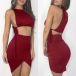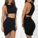sleeveless crop top and a high waist irregular hem skirt,this two-piece set can showcase your
