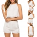 for that Solid color style,including a sleeveless crop top and a high waist shorts,this two-piece set can