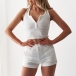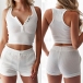 Solid color style,including a sleeveless crop top and a high waist shorts,this two-piece set will