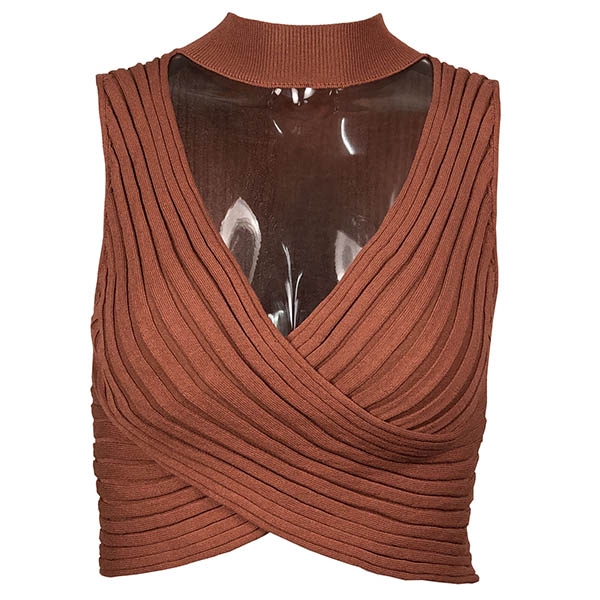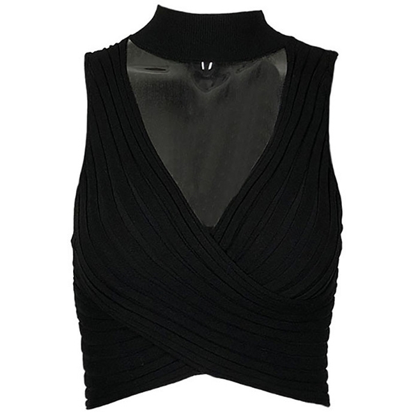 Sexy Sleeveless Deep V-neck Solid Color Crop Top