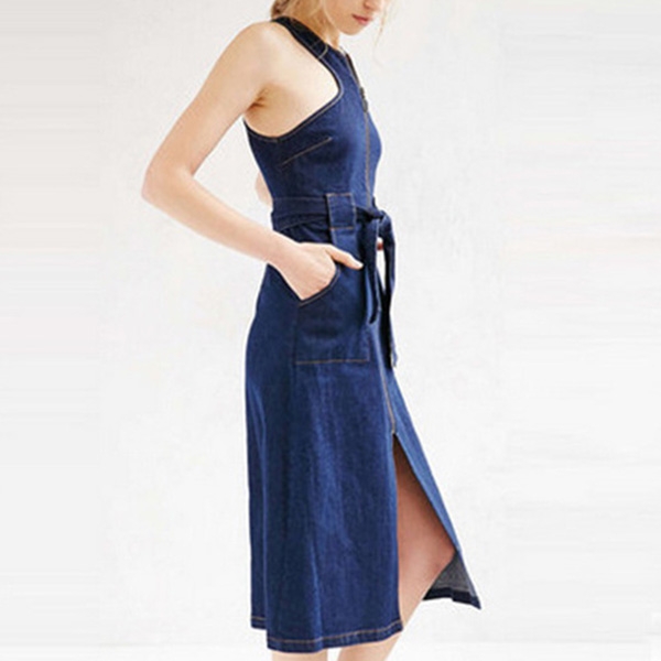 Denim dress is always popular,so why not add one to your wardrobe? This dress has a sexy style,