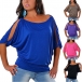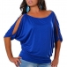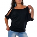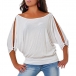 Sexy Slit Dolman Sleeve Round Neck Solid Color T-shirt