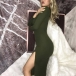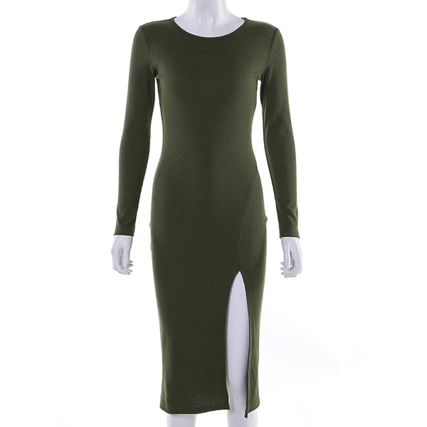 sultry look. Boasts a solid color,the slit hem design will offer you a sexier look,while the fit silhouette