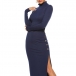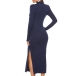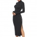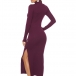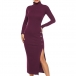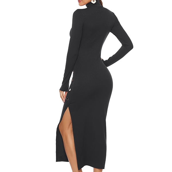 this knit dress. Solid color style,finished with long sleeve,slit hem,stand collar and a fit silhouette design,this