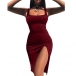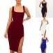 Comes with a solid color,the square collar and slit hem design will better exude your charming feminine appeal.